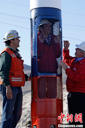 据悉,矿工们将搭乘3.95米高、460公斤重的子弹型营救舱重返地面,上来一趟约需45分钟,吊救作业将持续48小时,33名受困矿工最迟可在15日全部“重见天日”。