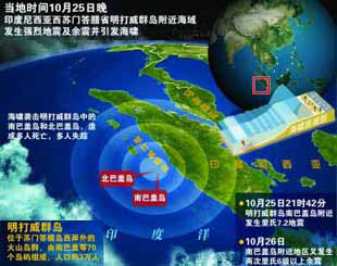 印尼气象和地球物理机构说,这次地震发生于当地时间25日21时42分(北京时间22时点42分),震中位于西苏门答腊省明打威群岛南巴盖岛西南78公里处,震源深度为10公里。地震发生后,群岛的通信大部分中断,目前仍未完全恢复,有关部门正在加紧搜集进一步消息。