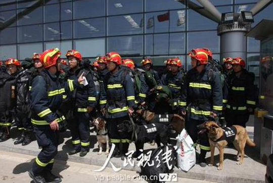 人民网讯 4月15日,广东省南方医科大学抗震救灾医疗救援队、山东省消防救援人员和广西省地震局专家赶到青海西宁机场。当日,全国许多救援人员和部队赶到了青海西宁市,准备再转乘到玉树机场,转往玉树地震灾区进行救援。另外有湖南卫视,三湘都市报,广州日报,南方周末、华商晨报、新华社等许多记者赶到了西宁机场,前往地震灾区采访报道。(郭国权/人民视线)